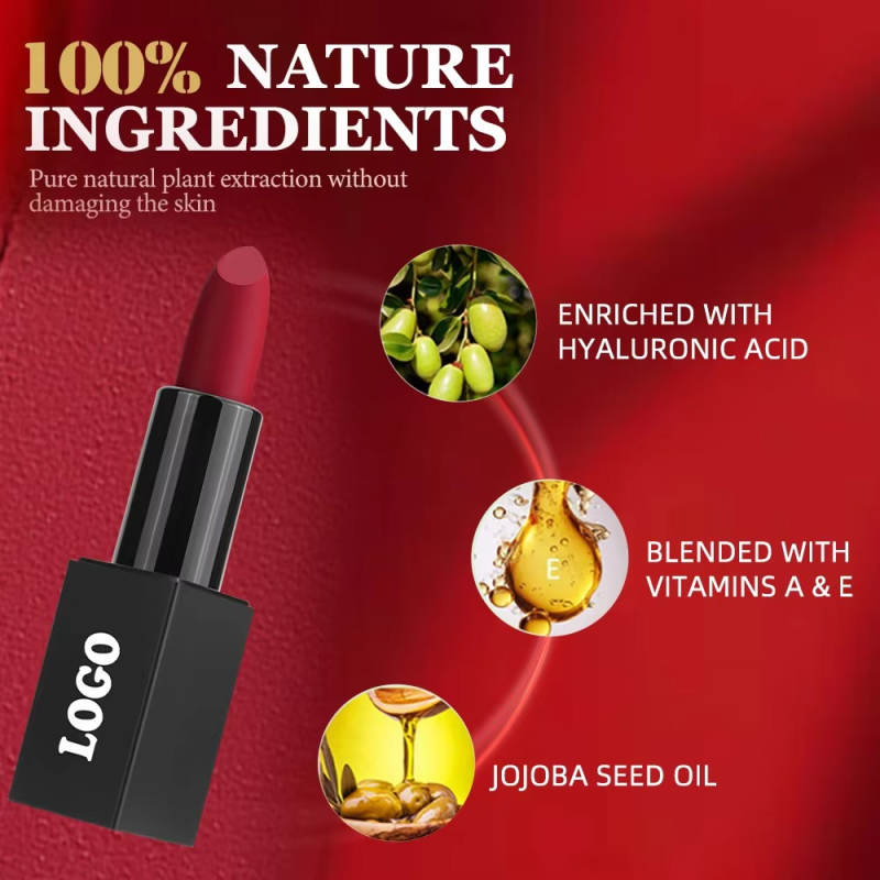 Customized Vegan Mineral Moisturizing Waterproof Long-lasting Matte Lipstick OEM ODM Private Brand